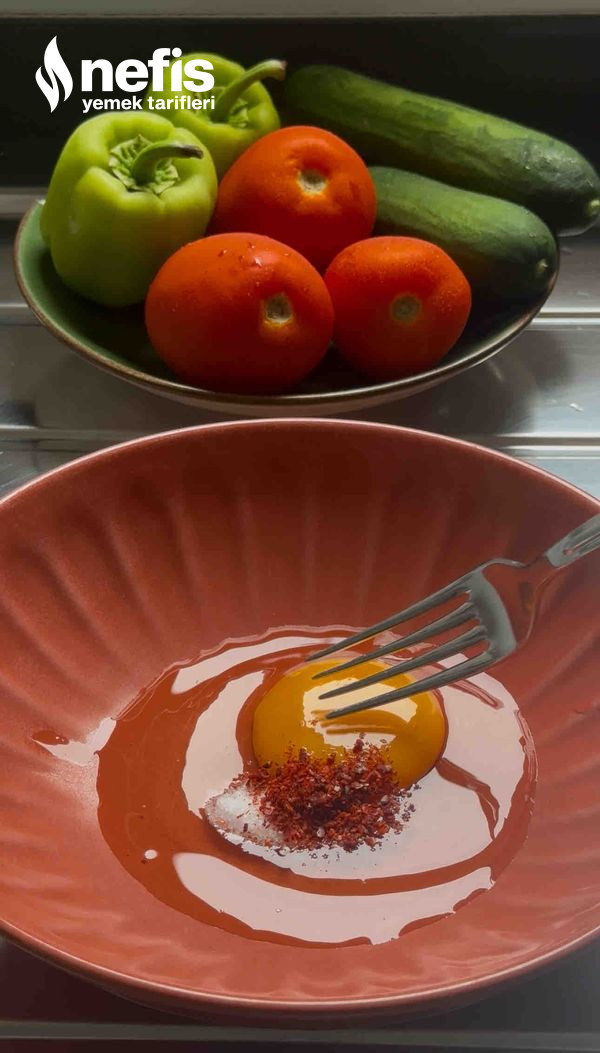 - Yumurtayı tuz ve pul biber ile çırpalım.