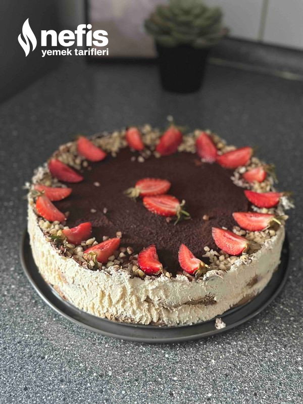 - Kenarlarına fındık serpip, çilekle süsleyin.