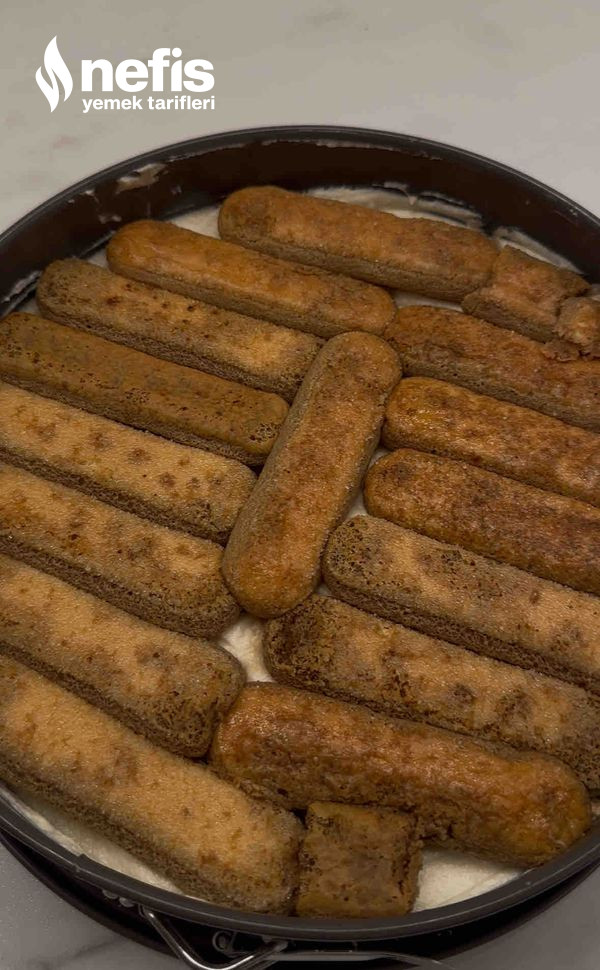 - Tekrar bisküvi ıslatın ve üzerine dizin. Ben 2 kat bisküvi dizdim.