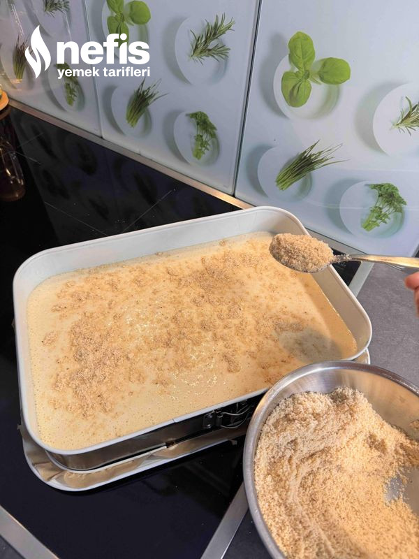 8. Islatmak için, fırından çıkan keke kremayıda her yerine serpin. Sonra 5 dakika daha fırına verip pişirin. Uygunca soğuduktan sonra dilimleyin ve afiyet olsun🤍.