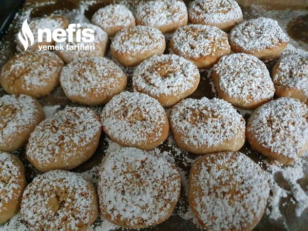 6. Fırından çıkan kurabiyelerin üstüne pudra şekeri serpilir.