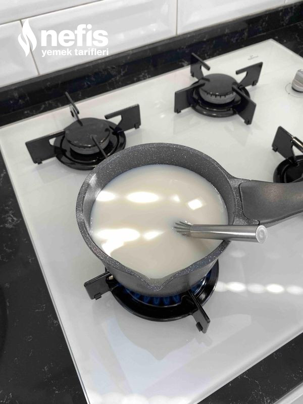 - Şekerimizi sütümüzü ve suyumuzu aldığımız tavamızın altını yakıyoruz şekerler eriyene kadar karıştırıyoruz. (isterseniz yalnızca 3 su bardağı su ya da yalnızca 3 su bardağı süt ile de şerbetinizi yapabilirsiniz. )
