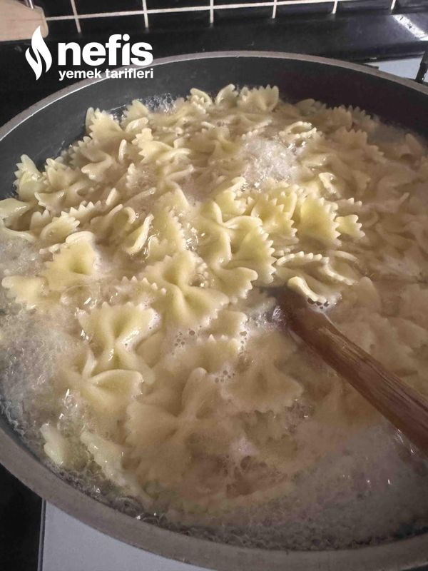 - Makarnamızın üzerine bir kaşık yardımıyla her yerine gelecek halde yayalım.
