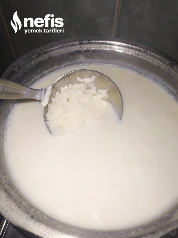 1. 2 litre sütümüzün içine toz şekeri ve pirinci alıp kaynatalım.