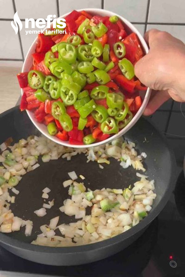 - Zeytinyağında kapya biber ve soğanı kavurun.