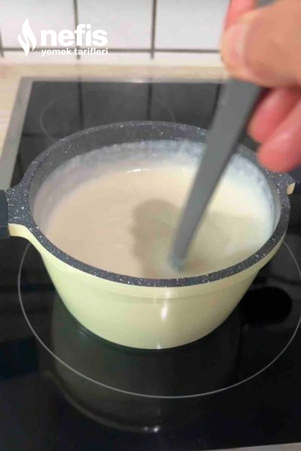 - Sütü azar azar ekleyerek topaklanmadan karıştırın.