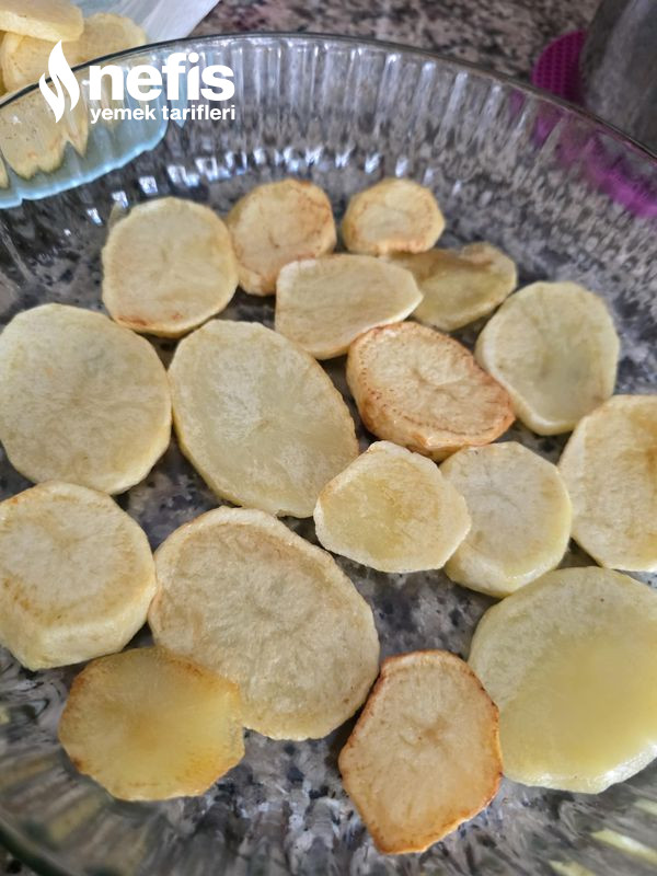 - Patatesleri daire formunda kesip kızartıyoruz (fırında çiğ kalmasın diye).