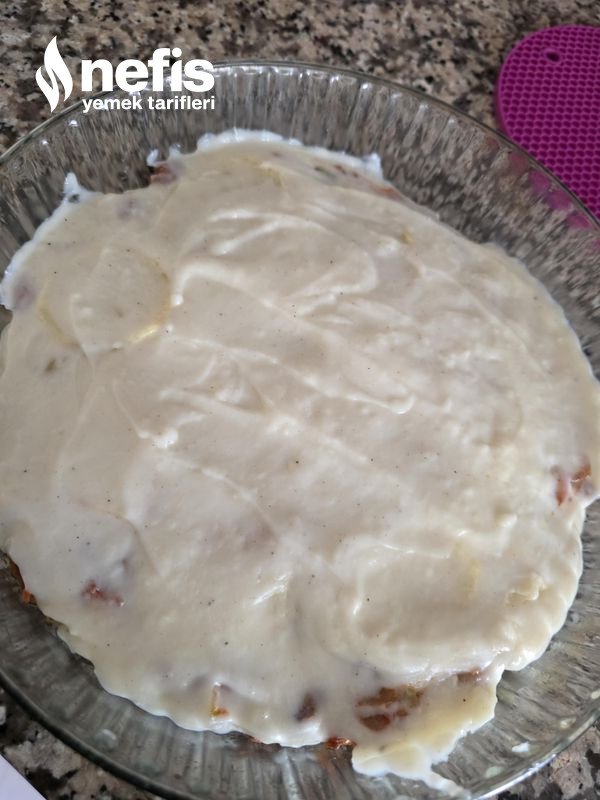 - Üzerine tekrar patates dizip onun üstüne beşamel dilek ederseniz de kaşar ekliyoruz ,işte bu kadar sonra fırına çok fakat çok lezzetli oluyor kesinlikle deneyin.