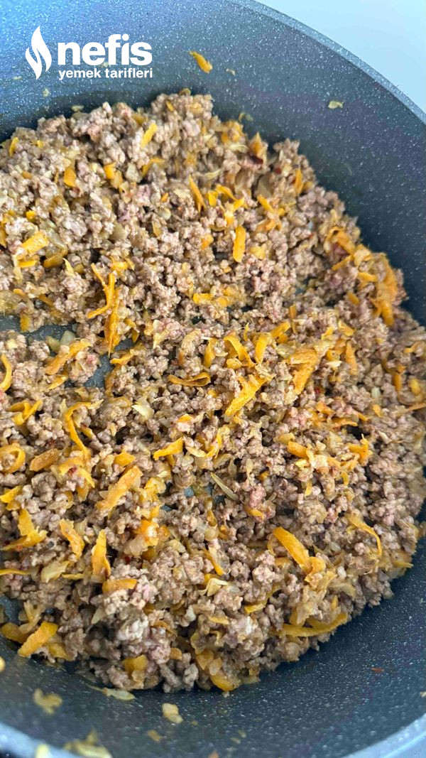 - Kıyma ve baharatları ekleyip su çekene kadar pişirin.