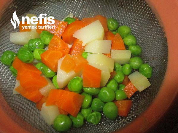 9. 6-7 dk kısık ateşte haşlayalım, soğuk sudan geçirelim süzgüye alalım.