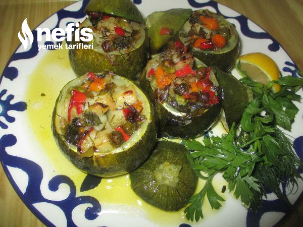 Fırında Garnitürlü Girit Kabağı Dolması Tanımı Fotoğraflı Yapılışı