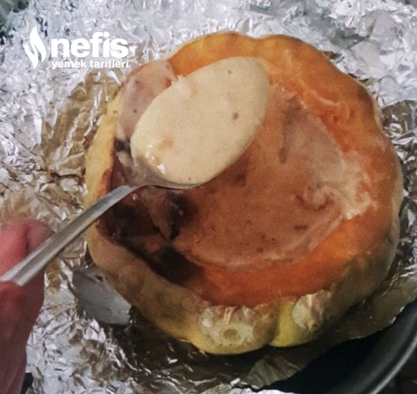 Kabağı da folyo ile sardım, kabağın içi de pişsin diye.