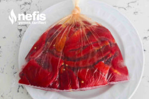 - Közlenen biberleri birinci sıcağı çıktıktan sonra bir poşete koyup 5 dakika bekliyoruz. Terleme usulüyle kabukları hoş bir biçimde soyulacaktır.