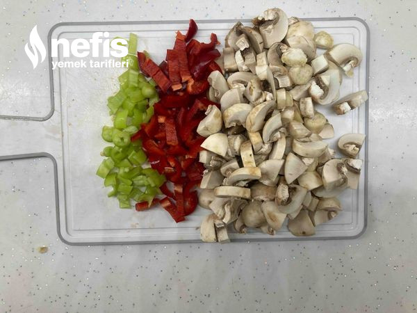 4. Biberleri de mantarlar ile birlikte pişirelim.