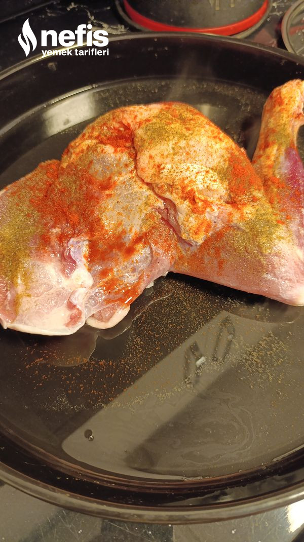 - Kuzu kolu yıkayıp fırın tepsisine koyuyoruz ,sıvı yağ ,kırmızı toz biber ,karabiber, tuz ve suyu da ekleyerek sosu hazırlıyoruz.