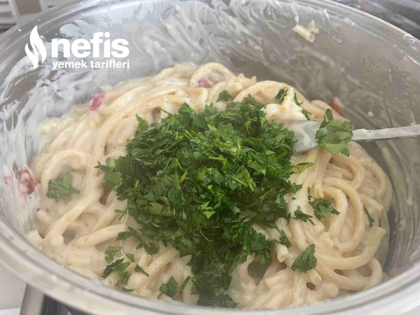 4. Haşladığımız beşamel sosa makarnayı ekleyip karıştırın.