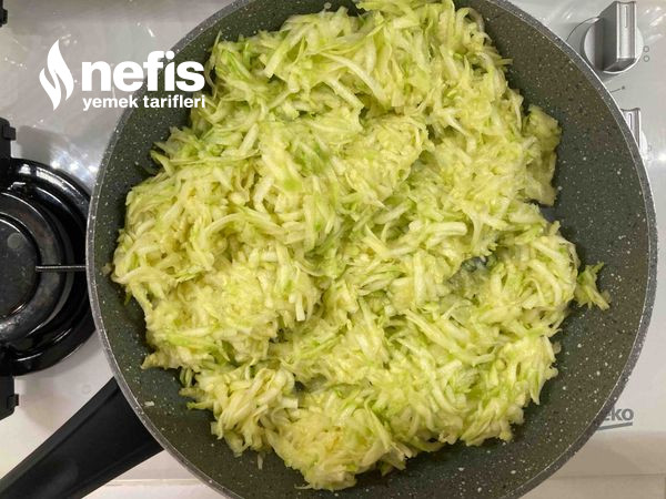 - Kabakların kabuklarını doğrayıp, rendeleyelim bir tavanı bir tavada suyunu salıp, çekene kadar pişirelim.
