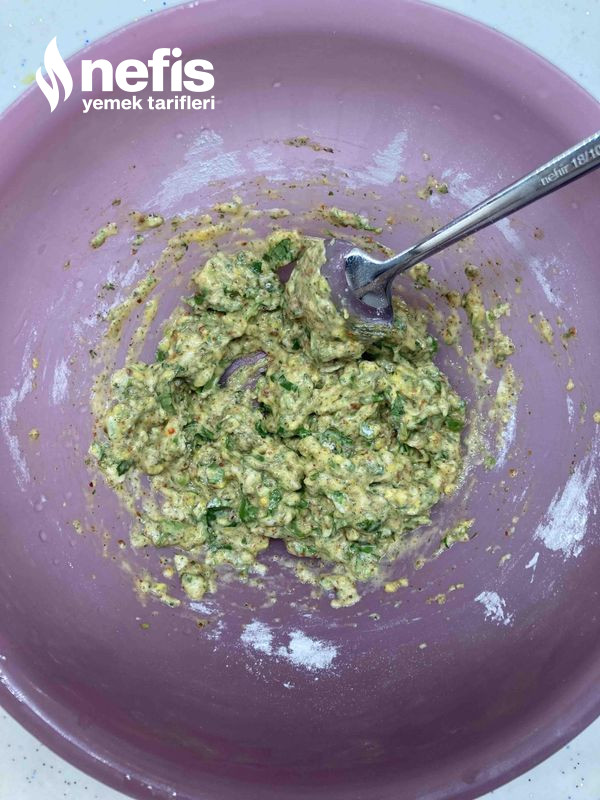 - Geniş bir kaba yumurta, un, maydanoz ve baharatları ekleyip, güzelce karıştıralım.
