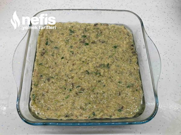 - Uygun bir fırın kabını sıvı yağ ile yağlayıp, hazırladığımız karışımı dökelim.