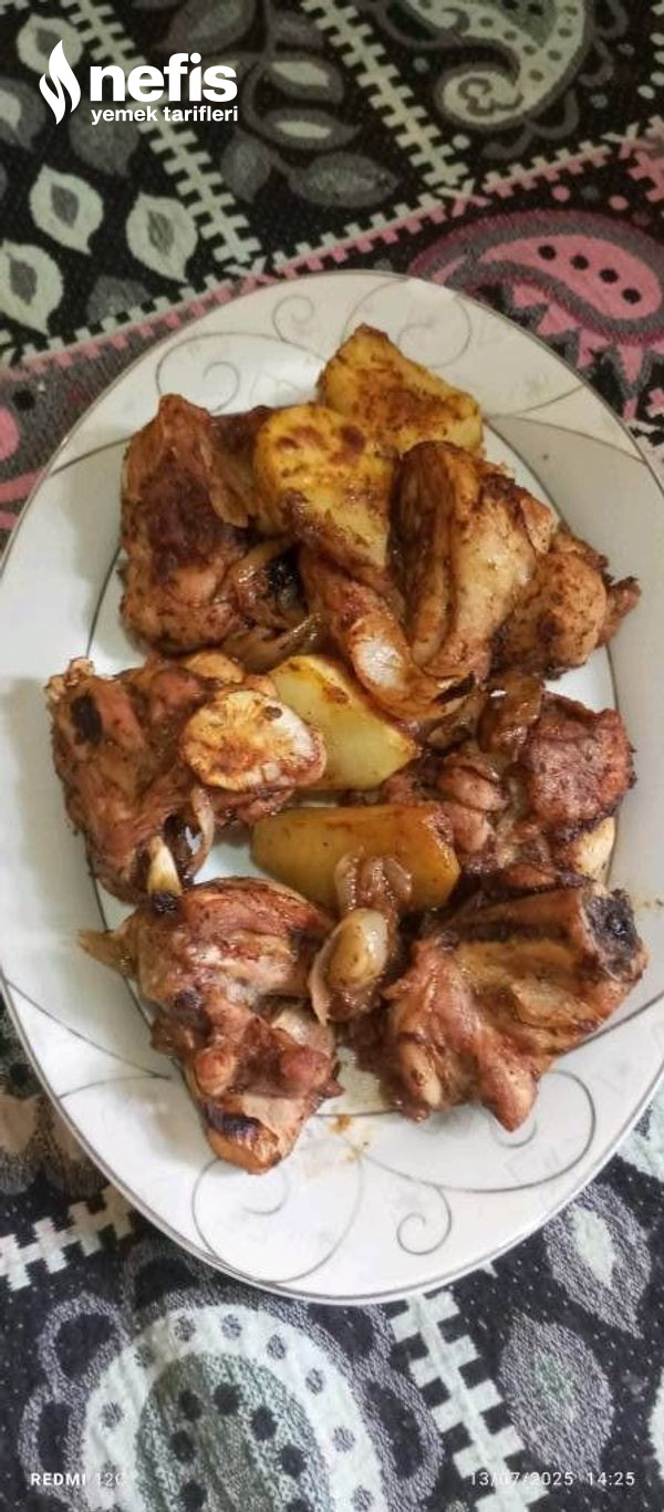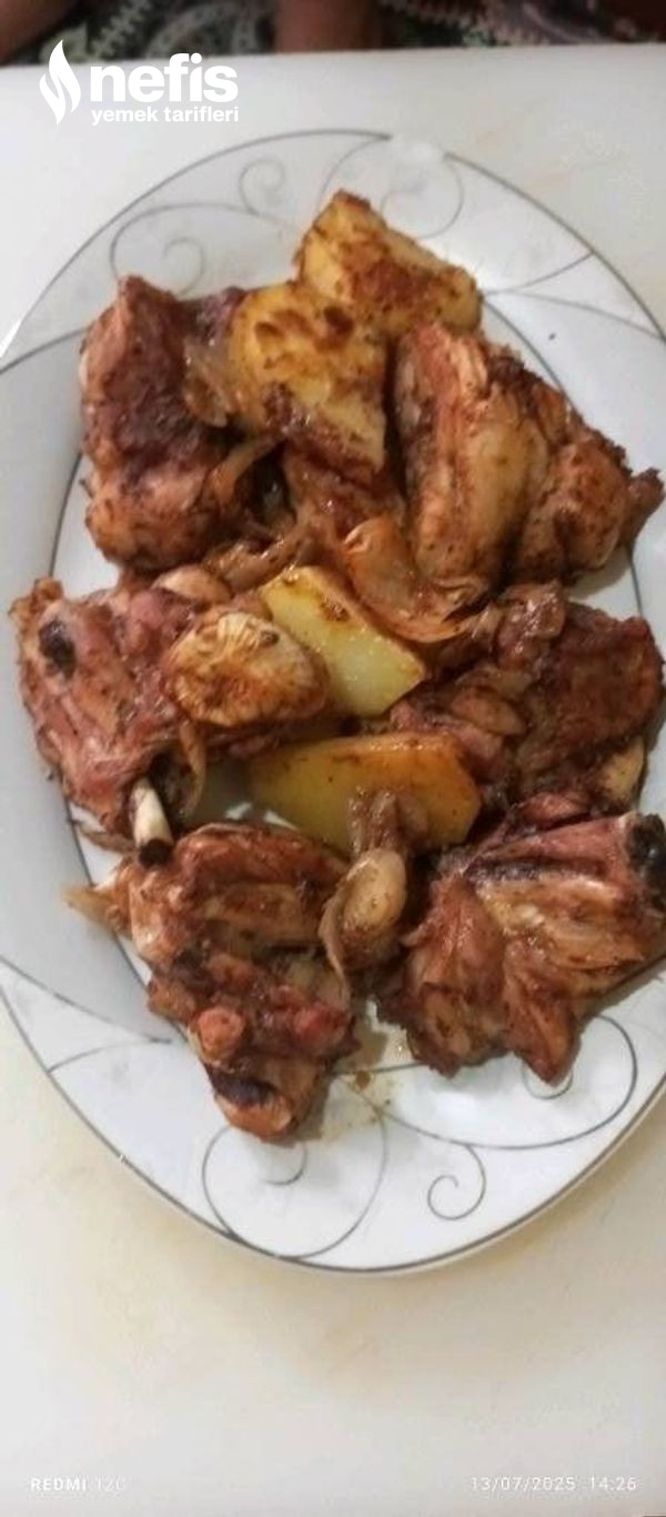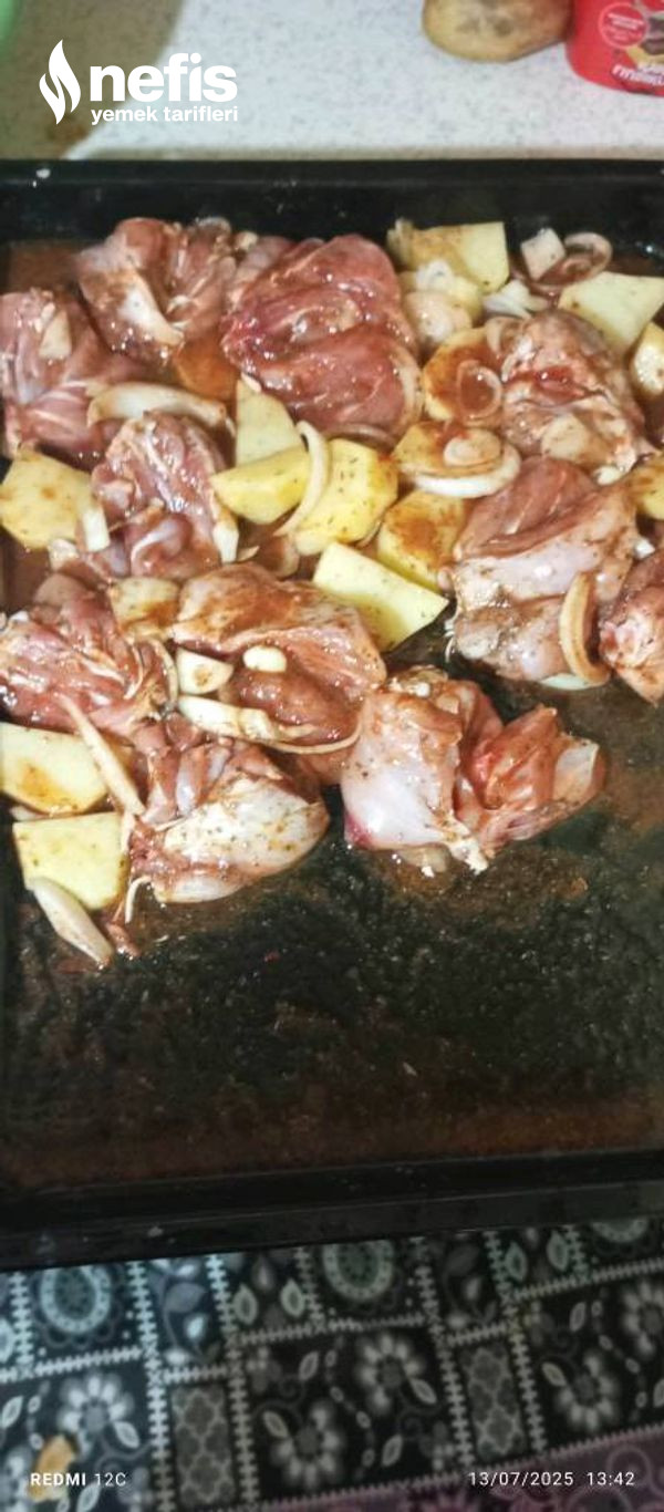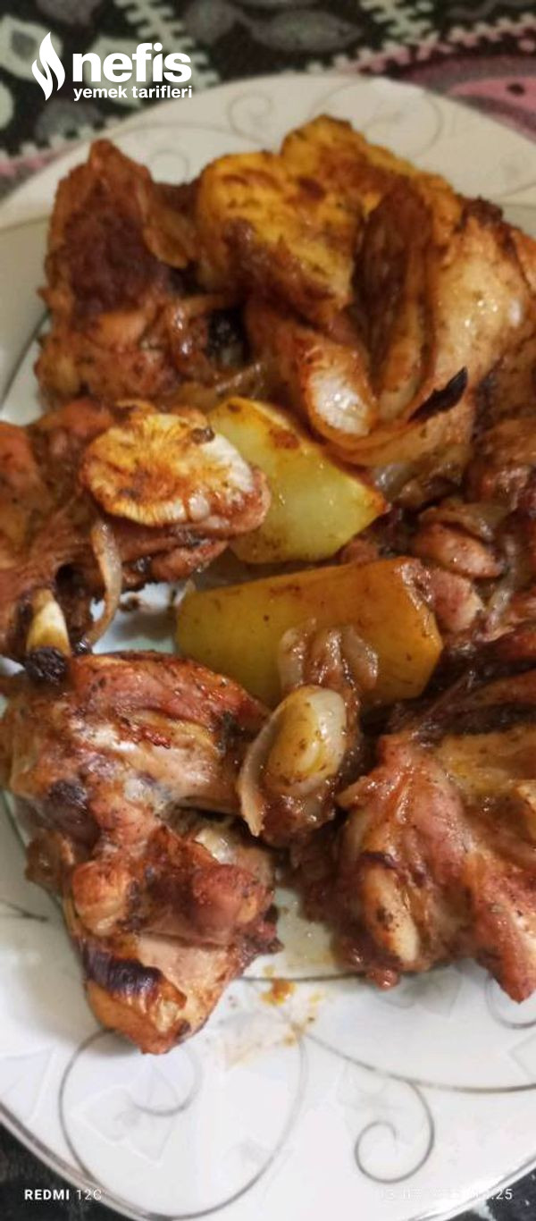- Ardından büyük bir biçimde kestiğim soğan ve patatesi üstüne koydum geri kalan gereçleri de içine ekleyip, güzelce karıştırıp yağlanmış tepsiye ekledim ve kızarana kadar fırında pişirdim. Deneyecek olanlara şimdiden afiyet olsun.