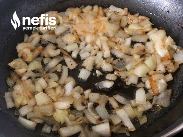 10. Sosunu hazırlayalım. Uygun bir tavaya yağı alalım kızgın yağın üzerine ince ince yemeklik kıyılmış soğanı, sarımsağı ek edelim yakmadan kavuralım.