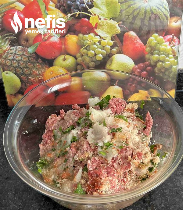 1. Kıymamızı kabımıza alıyoruz. Soğanımızı rendeliyoruz. Akabinde galeta unu, yumurta, maydanoz ve baharatları ekleyip yoğuruyoruz. Köftelerimizi yuvarlayıp biçim verip dinlendiriyoruz.