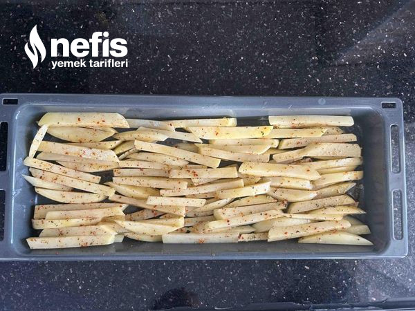 - Patatesleri doğrayıp zeytinyağı ve baharatlarla baharatlayalım.