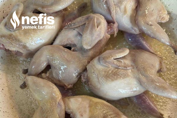 - Haşlanan bıldırcınları tereyağında mühürleyelim.