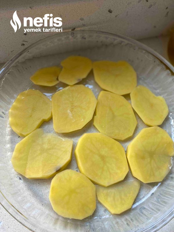 - İlk olarak patateslerimizi yuvarlak olacak formda kesiyoruz.