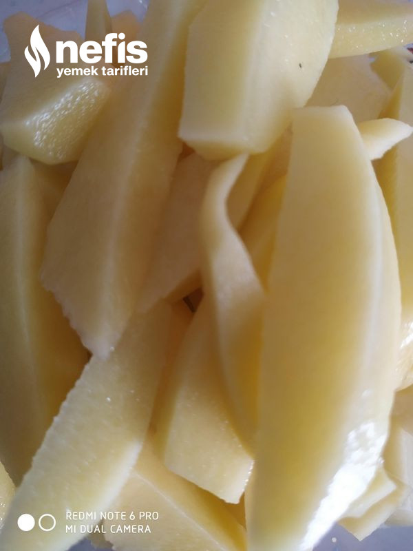 - Tavuğumuz fırındayken biz de patateslerimizi ince uzun domateslerimizi halka halka doğruyoruz.