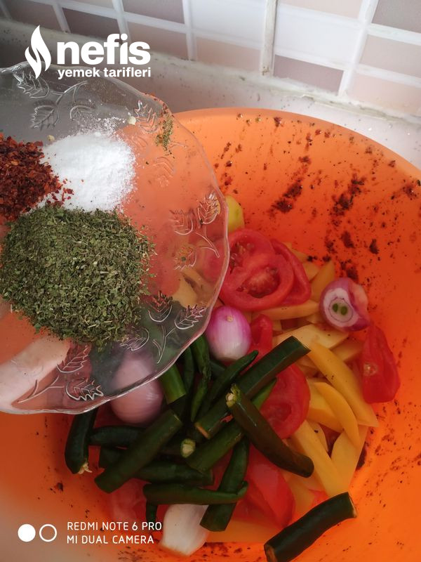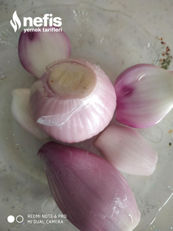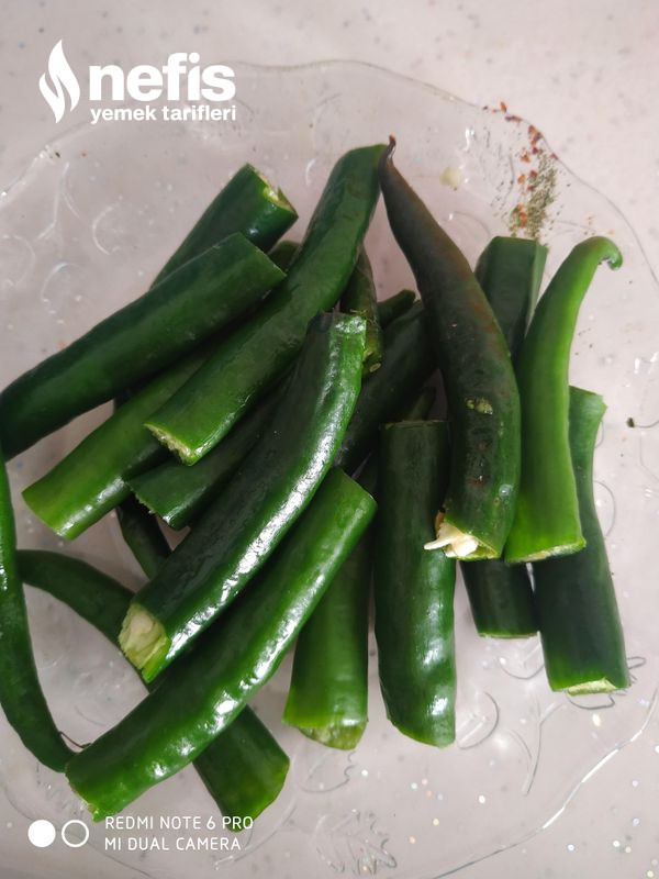 - Biberlerimizin saplarını keserek küçük uzunluk soğanlarımızı soyup 1/2 tatlı kaşığı tuz 1/2 tatlı kaşığı pul biber 1/2 tatlı kaşığı nane ile harmanlıyoruz.