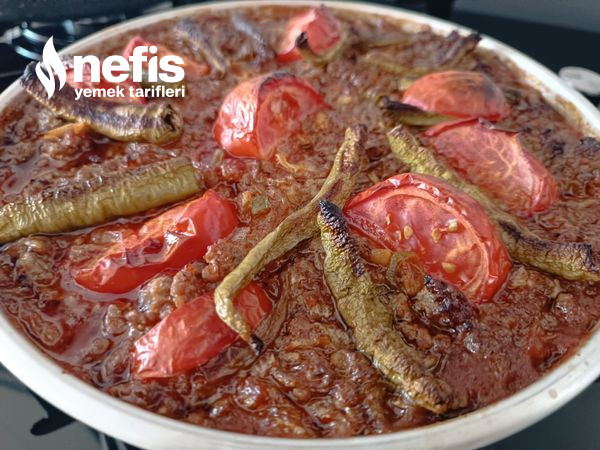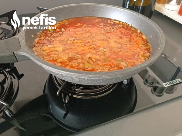 - Tuz ve baharatlarıda ek edip bir bardak sıcak su ek edip bir iki dakika kadar pişirip fırın tepsisine dizdiğimiz patlıcanların üzerine kıymalı harcı döküN.