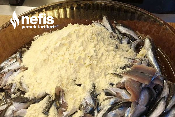 - Suyu süzülen hamsileri geniş bir kaba alalım.
