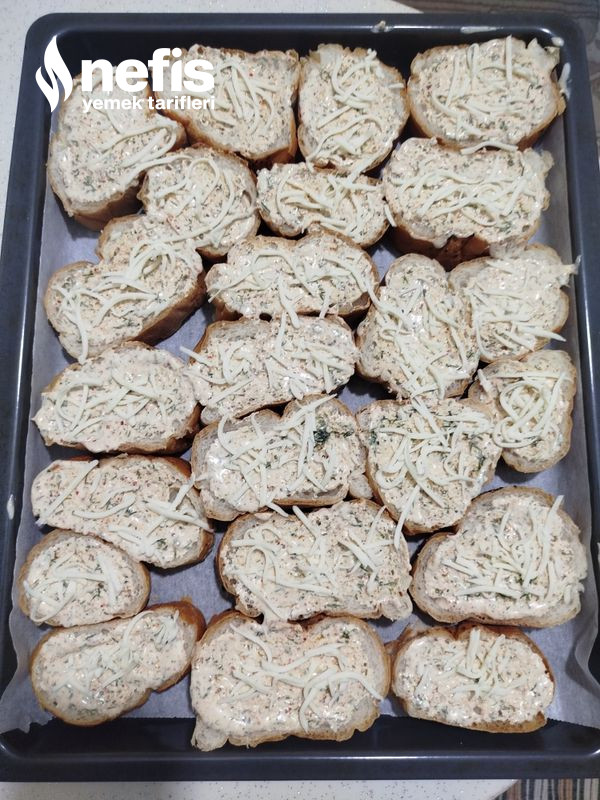 - Yaptığımız karışımı ekmeklerin üzerine sürelim.