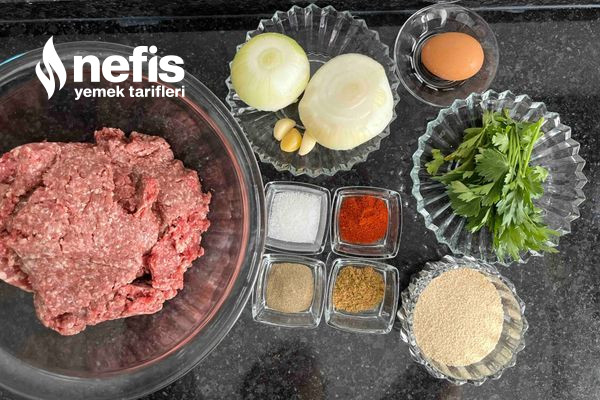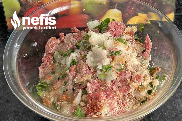 - Kıymayı kaba alıp içerisine tüm baharatları ek ediyoruz.