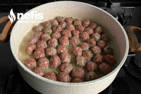 - Köftelerimizi az yağda renkleri dönene kadar kızartıyoruz.