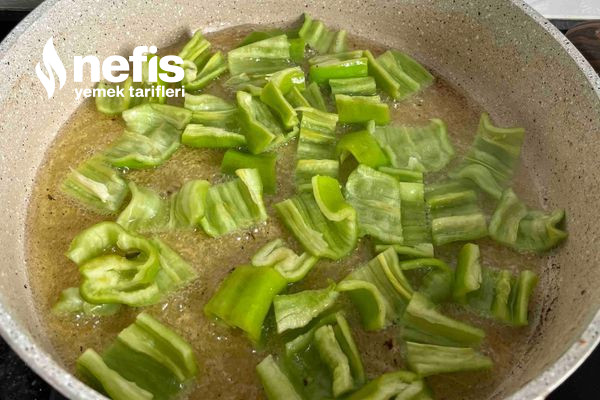 - Daha sonra 2 dakika köy biberlerini kızartıyoruz.