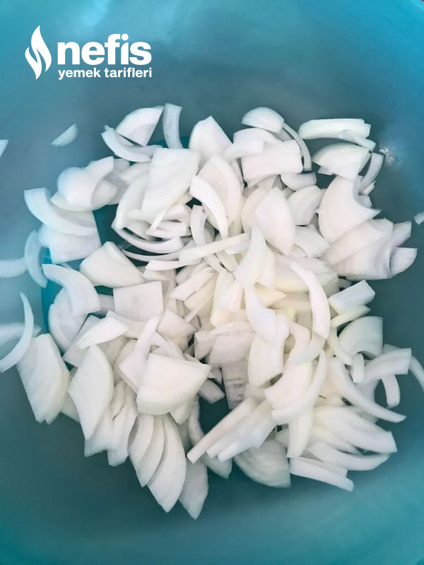 - Aynı biçimde soğanlarımızı da çok ince olmayacak biçimde doğruyoruz.