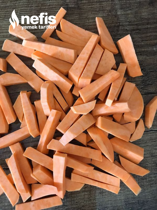 - İlk olarak tatlı patateslerimizi kızartmalık olarak doğruyoruz.