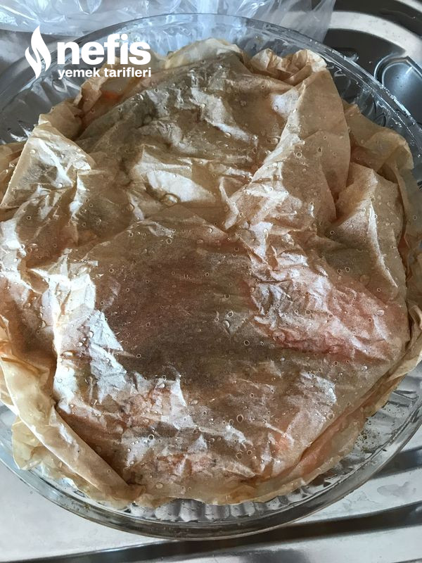 - Kalan sosuda balıkların üzerine döküp ıslattığımız yağlı kağıdı üzerine örtüp fırına veriyoruz.