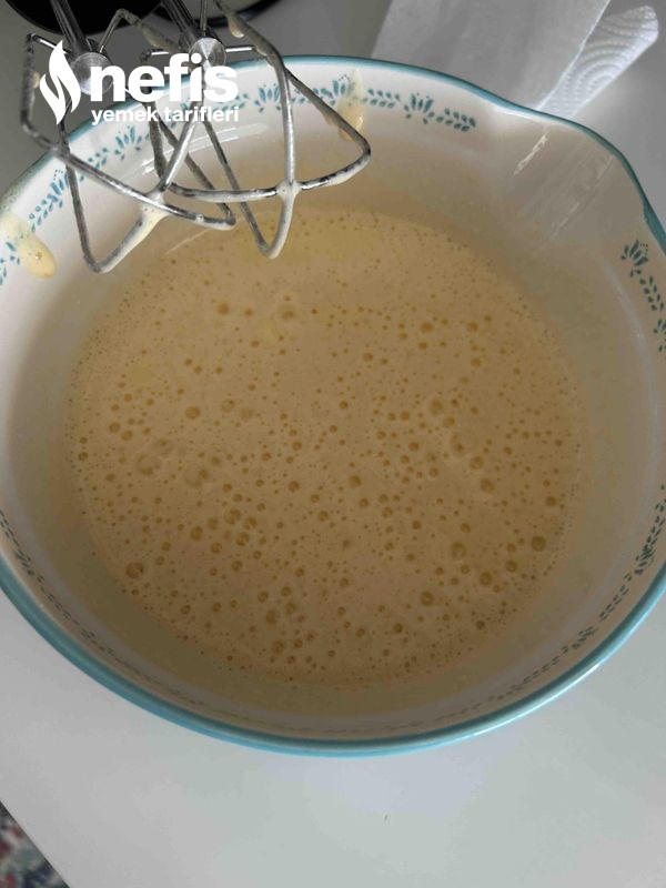 - Ayrı bir kapta 3 adet yumurta ve yarım su bardağı şekeri köpük köpük oluncaya kadar çırpalım.