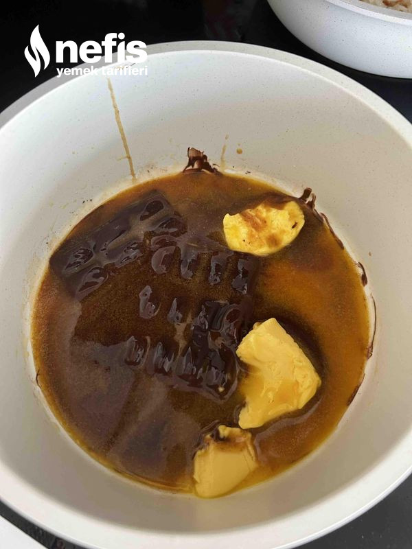 - 80 gram bitter çikolatayı ekleyerek çikolata büsbütün eriyince kadar karıştıralım.