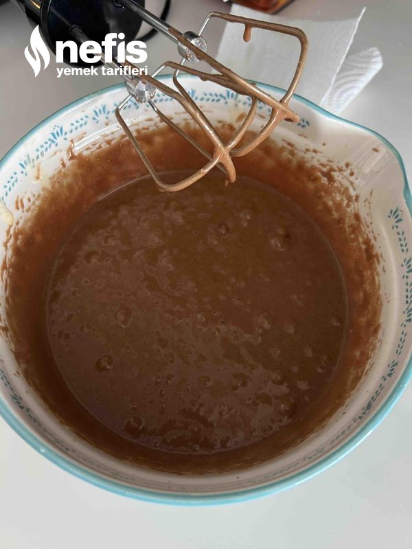 - Son olarak erittiğimiz çikolatalı karışımı ek edelim ve homojen bir kıvam alıncaya kadar çırpalım.