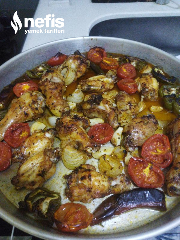 1. Tavukları az tuz ile yıkıyoruz sonra üzerine bütün gereçleri atıp, fırın tepsisine diziyoruz üzerine yarım çay bardağı su ek ediyoruz.