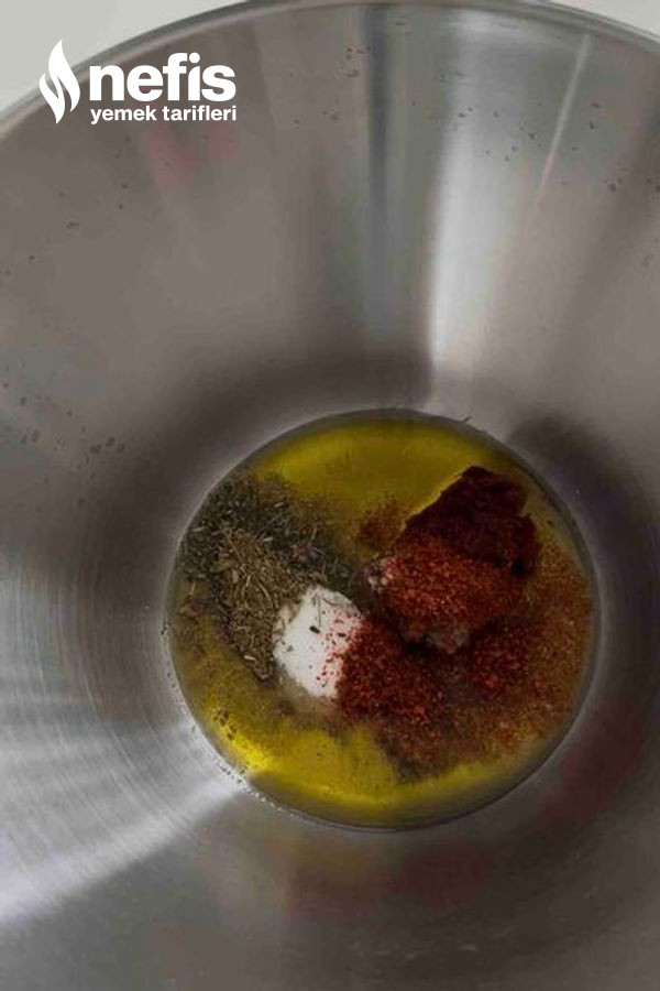 - Sebzeleri küp küp doğrayalım. Derin bir kapta yağ, salça ve baharatları karıştıralım.