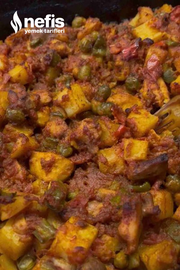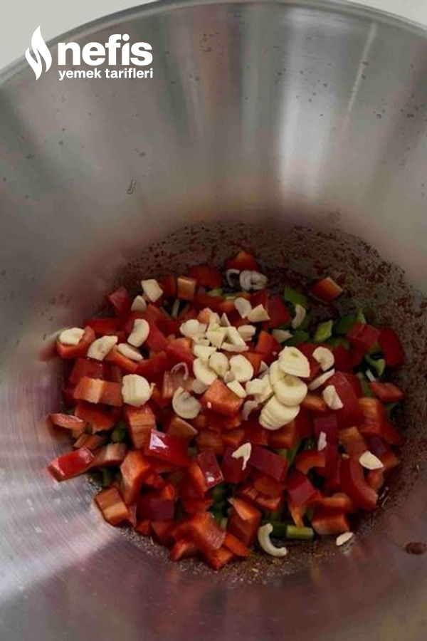 - Bütün gereçleri ek edelim ve karıştıralım. Domates konservesini de ek edelim ve karıştıralım.