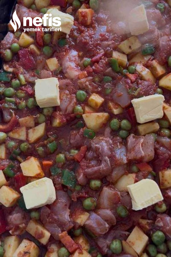 - Uygun bir fırın kabına aktaralım ve üzerine tereyağı koyalım. Üzerine ıslatılmış yağlı kağıt kapatalım.
