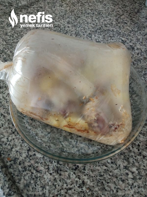 - Öncelikle fırın poşetimize tavuklarımızı yıkayıp ekliyoruz.