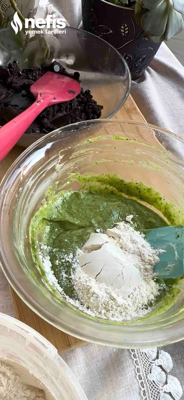 3. Sıvıyağın yarısını ıspanak ile birlikte blenderdan geçirelim, ayırdığımız karışımlardan birisine ek edelim, un ekleyerek elimize yapışmayacak kıvama gelene kadar yoğuralım doğranmış fıstıkları ek edelim. 1. Karışım hazır☺️.