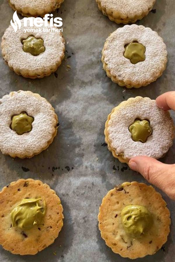 - Fırından çıkardığımız kurabiyeler soğuduktan sonra ortası boş olanların üzerine pudra şekeri serpelim.